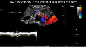 and a strong venous connection from the spine to the left renal vein, known as a tronc réno-rachidien. This vessel serves to equalise pressure between the renal vein and the epidural plexus. The fact that blood flow to the left kidney was significantly lower than to the right kidney, even with normal head posture, indicates the inability of the collateral circulation to adequately drain congested blood from the left renal vein.