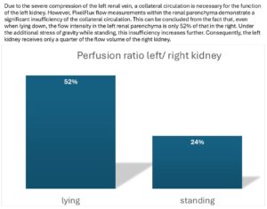 - Total compression of the left renal vein by the uplifted aorta in front of the aorta-maximum form of a so-called nutcracker syndrome